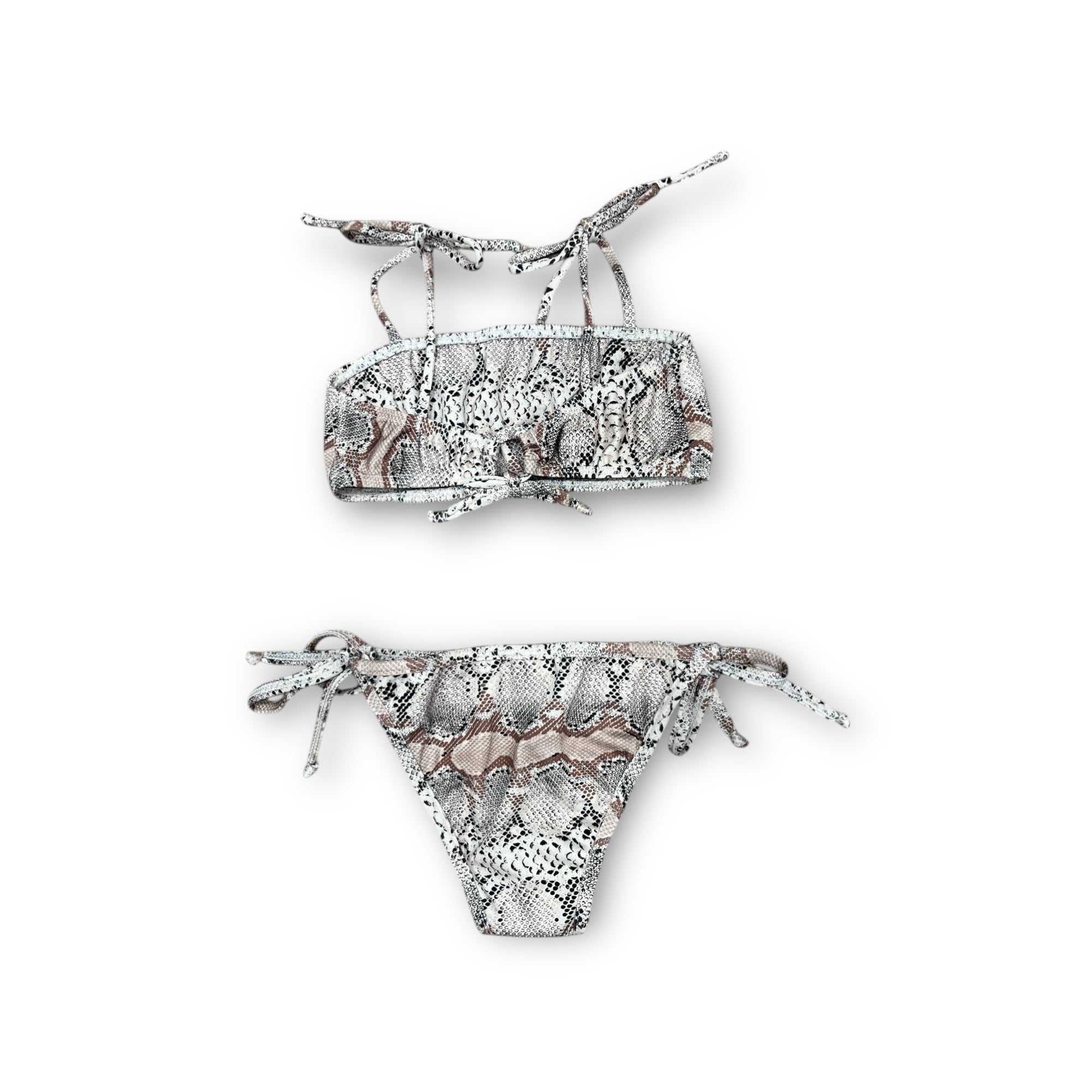 Two piece bikini. Side tie bikini set. Stylish kids swim bikini features a bold snake print.